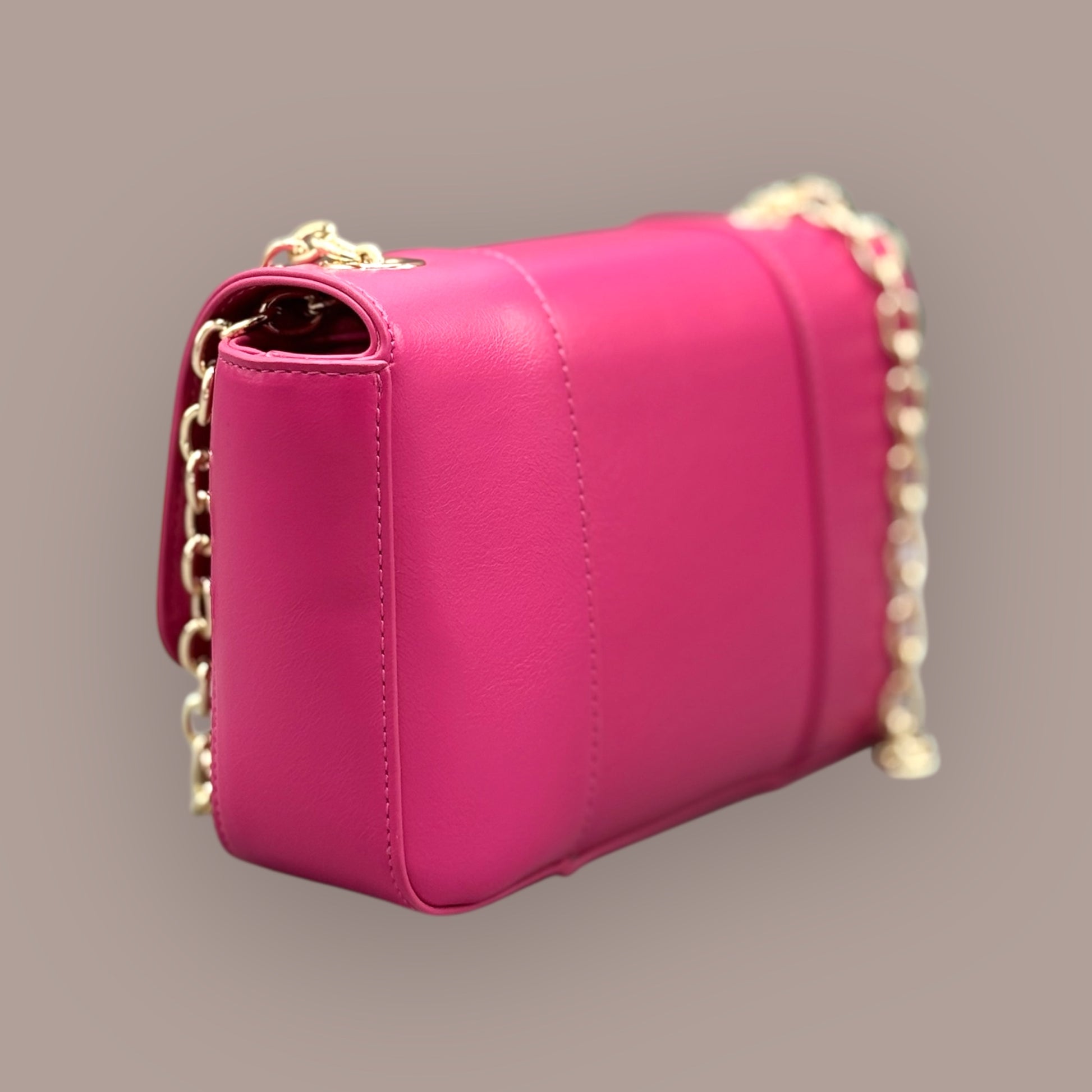 Introducing the Peek'A'Boo Sleek BCM Crossbody. This compact yet spacious bag is perfect for the bold and adventurous, featuring the symbolic pink color representing Breast Cancer. It includes a Magnetic Snap Closure, 2 Interior Compartments, Non-removable/Adjustable Chain Strap, Smooth Leather Material, Suede Inside Lining, and dimensions of 4.5"H x 7.5" W x 2"D with a Strap Drop of 21". Order now and be the first to own this elegant and meaningful piece.